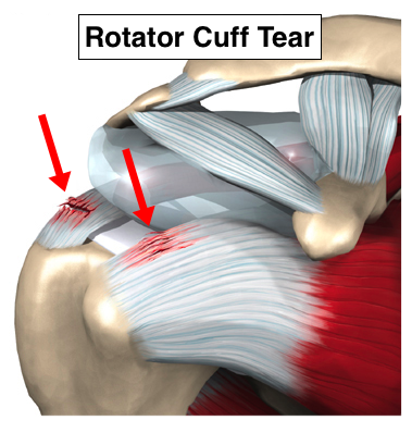 The rotator cuff tendons can be injured or torn by trying to lift a very heavy object while the arm is extended, or by trying to catch a heavy falling object.